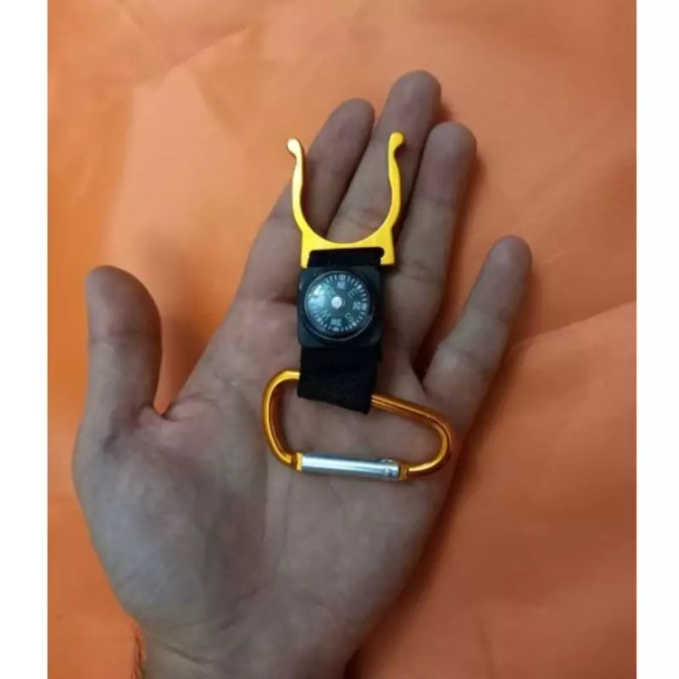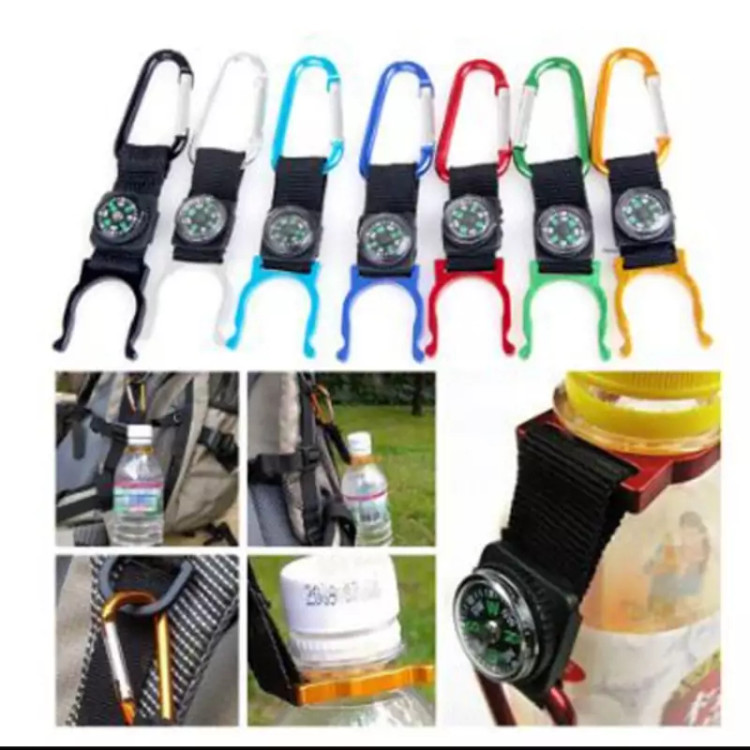 نگهدارنده بطری به همراه یک قطب نما از تجهیزات سفری و کوهنوردی و کمپینگ بوده وسیله ای بسیار ساده اما کاربردی است اتصال ان به کوله و بطری یا هر آویز دیگر به سهولت امکان پذیر است از کیفیت بالایی برخوردار بوده و بسیار کم جا و سبک است تنوع رنگ آن برای هر سلیقه ایی کار را آسان کرده و قطب نمای آن بدون تاثیر آب و هوایی همواره کارکرد خود را از دست نمیدهد