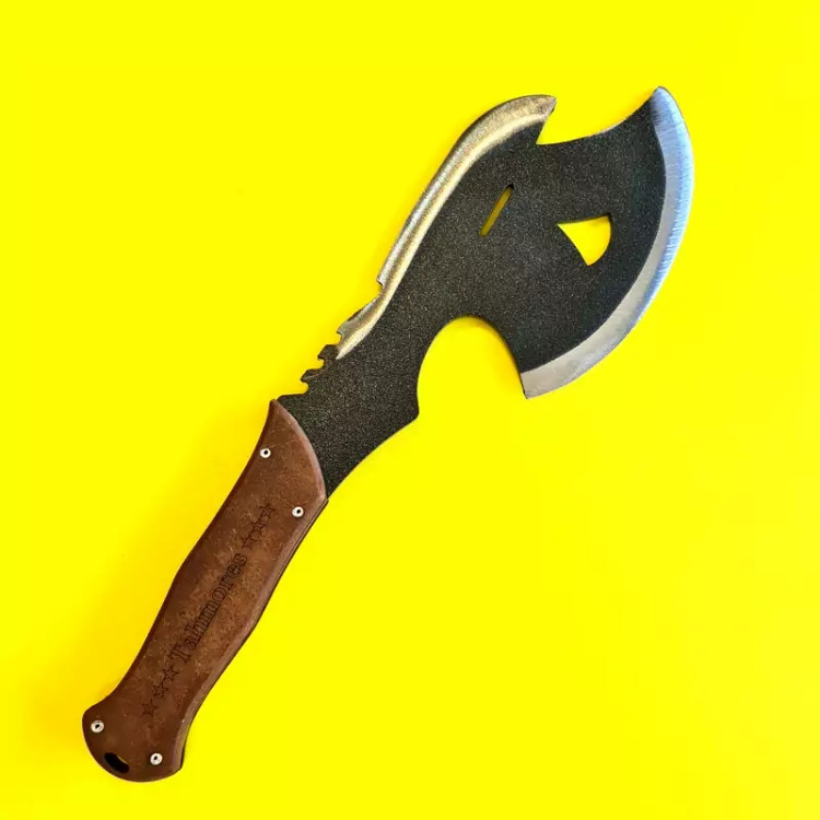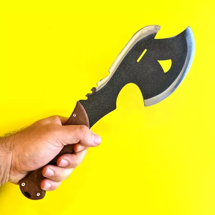 برای هر طبیعتگرد و کوهنوردی داشتن یک تبر و همینطور داشتن یک چاقو بسیار ضروریست.تبر طهمورث هم چاقو و هم تبر را در یک ابزار با طراحی بسیار شیک و جذاب تولید کرده.این تبر تولید کشور عزیزمان ایران میباشد متریال ساخته شده از شاسی ماشین نیسان که بسیار مقاوم و مستحکم میباشد ساخته شده است.ابعاد این تبر 30در 12 سانتی متر می باشد.با وزن کمتر از 500 گرم بدون غلاف تقدیم میگردد.لازم به ذکر است برای عدم صدمه و آسیب در حمل و نقل این تبر خیلی تیز نمی باشد و در صورت نیاز خودتان براحتی میتواتید تیزش کنید.