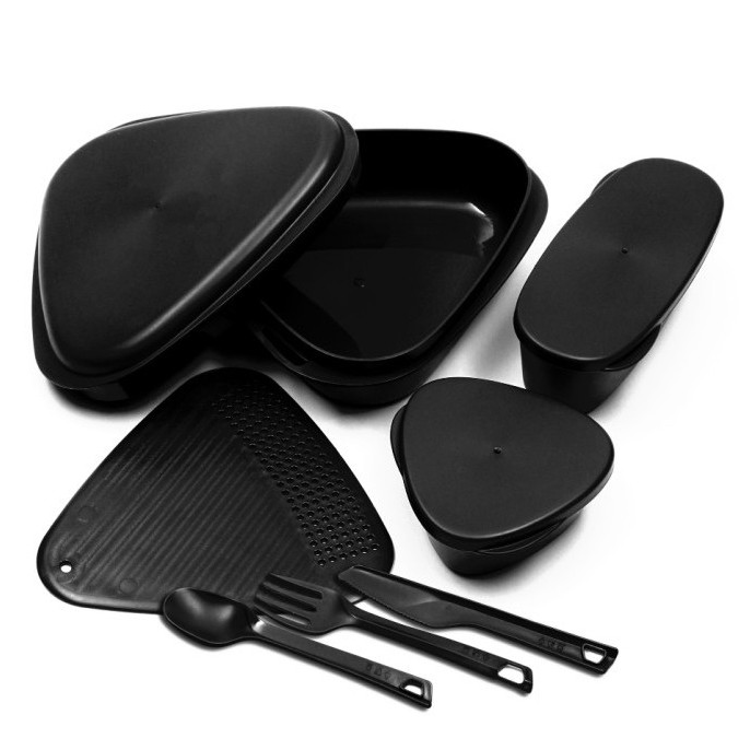 تعداد در پک: ظرف مثلثی با درب، ظرف مثلثی کوچک، ظرف مثلی بیضی، تخته، ست قاشق چنگال کارد