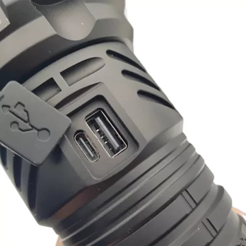 این چراغ قوه اسمال سان دارای برد نور تا 1000 متر است. همچنین دارای حالتهای روشنایی شامل نور زیاد، نور متوسط و نور چشمک زن، زوم و متمرکز است. این چراغ قوه از پک 8 تایی باتری 18650 با ظرفیت 30400 میلی آمپری برای شارژ سریع و زمان روشنایی بیشتر استفاده میکند. یکی از قابلیتهای این چراغ قوه ویژگی زوم میباشد. همچنین میتوانید به آسانی با پورت تایپی سی این چراغ قوه را شارژ نمایید. نور این محصول سفید بوده که تاریکترین مکانها را برای شما روشن مینماید. این چراغ قوه مجهز به خروجی پاوربانک است که میتوانید گوشی تلفن و یا لوازم جانبی را با کمک آن شارژ نمایید.
