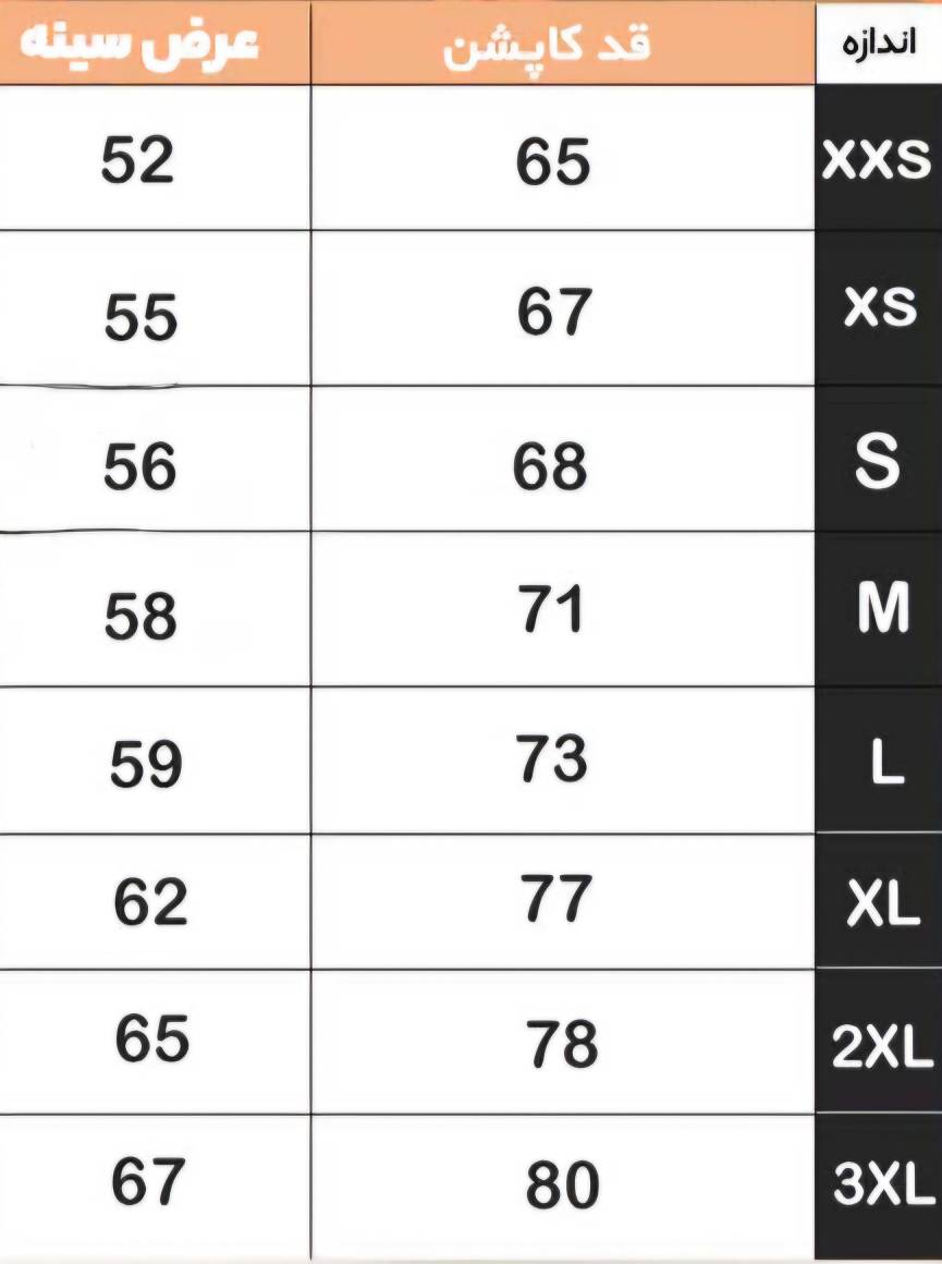 سایز بندی: : XXS-XS-L-XL-2XL-3XL