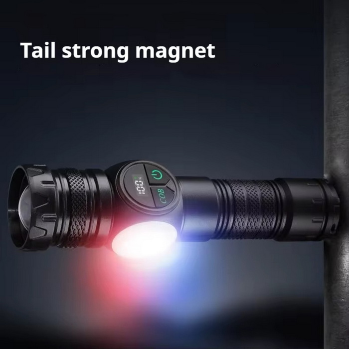 انتهای چراغ قوه آهن ربای قوی داره که میتونید توی جای مورد نظرتون اونو ثابت کنید ، در ضمن با سری قابل تنظیم اون میتونید فوکوس نور رو تنظیم کنید