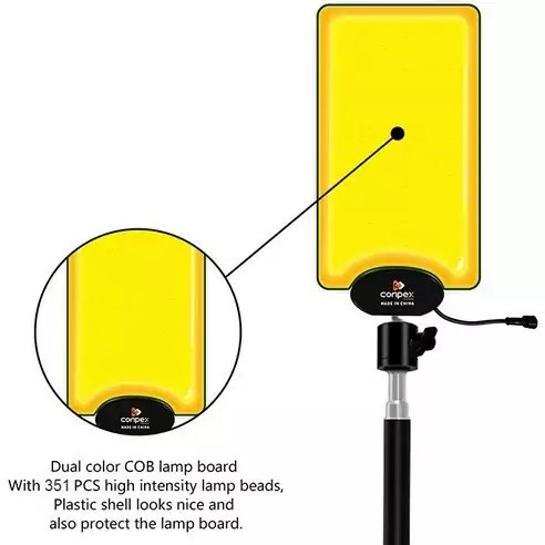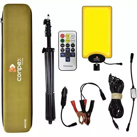 چراغ کمپینگ کانپکس (conpex camping light) منبع نور فوق العاده قوی و کاربردی مناسب برای کمپینگ، پیک نیک، سفر های جاده ای می باشد، یکی از ویژگی های این محصول ضد آب بودن آن است که باعث می شود در روز های بارانی نیز به خوبی کار کند از ویژگی های دیگر این محصول قابلیت تنظیم ارتفاع می باشد که میتوانید نور را از بالا و در ارتفاع قرار دهید تا فضای بیشتری را روشن نمایید. برای خاموش روشن کردن و تفییر شدت نور دستگاه نیازی به نزدیک شدن به اتصالات و یا دستگاه نیست و شما میتوانید بوسیله ریموت از راه دور و به راحتی نور دستگاه را تنظیم کنید. قدرت روشنایی 9600 لومن با حداکثر ارتفاع 2.8 متر حداقل ارتفاع 70 سانتیمتر دارای لامپ با کیفیت COB به همراه ریموت کنترل با 5 مدل افکت چشمک زن 3 حالت روشنایی کم تا زیاد دارای کیف برزنتی حمل مقاوم در برابر آب و ضربه 🔴لطفا قبل از سفارش محصول استعلام بگیرید