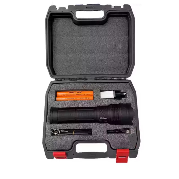 چراغ قوه اسمال سان مدل T261 جنس:الیاژ الومینیوم برد نور:1000 متر قدرت روشنایی:5000 لومن وزن:1200 گرم تعداد باتری:4 عدد ظرفیت باتری:20000 میلی آمپر تعداد حالت نور:3 حالت حالت های مختلف نوردهی:پر نور،کم نور و چشمک زن بند نگه دارنده:دارد دارای خروجی پاور بانک:است دارای نشانگر وضعیت شارژ:است دارای خاصیت ضد اب:است قابلیت زوم:دارد 🔴لطفا قبل از سفارش محصول استعلام بگیرید